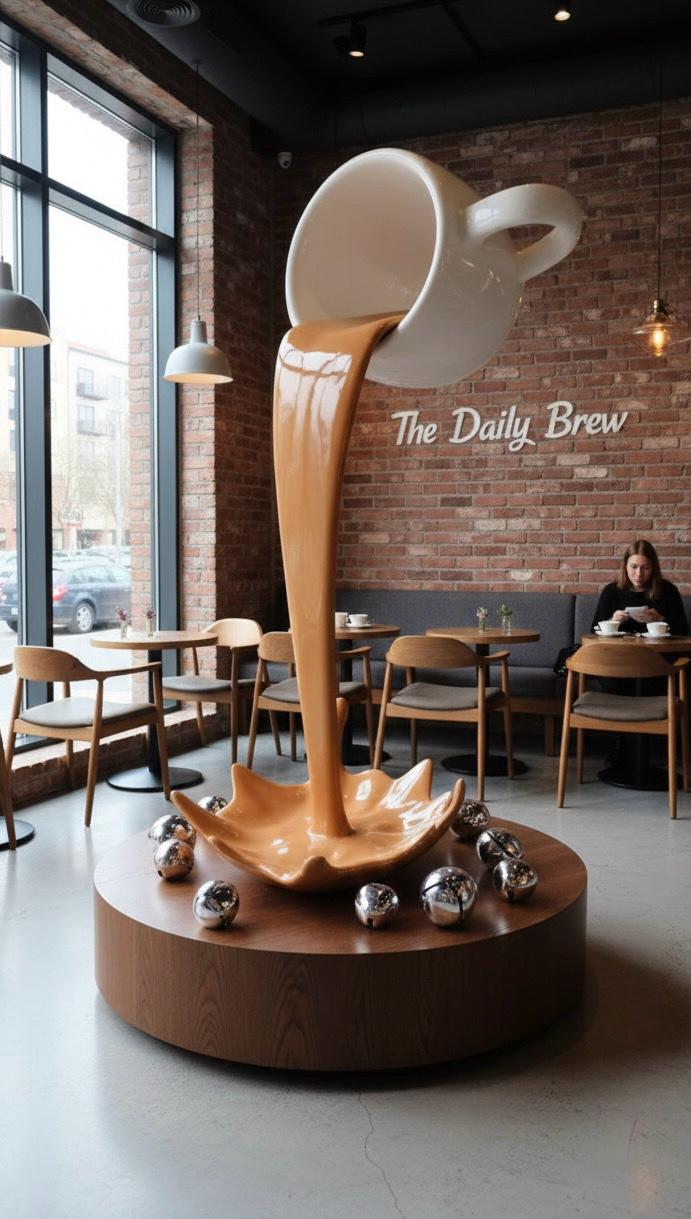 * Remarkable Design: It adds depth to the space with its gravity-defying, air-hanging cup and spilling coffee effect.