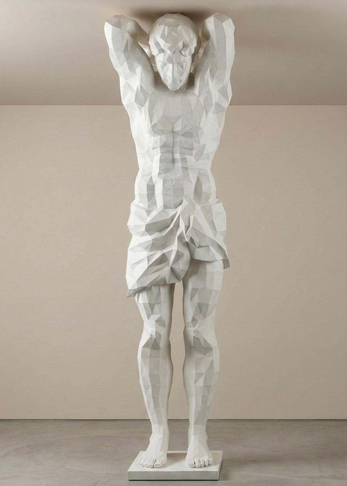 Combining classical sculpture with modern digital aesthetics, this work offers a simplified version of the human form. Polygonal surfaces reflect the minimalist and geometric approach of contemporary art.